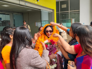 राष्ट्रीय अध्यक्षा जी के स्वागत में पार्टी पदाधिकारियों एवं कार्यकर्ताओं ने पुष्पगुच्छ, माल्यार्पण एवं आत्मीय अभिनंदन के माध्यम से उनका सम्मान किया। बड़ी संख्या में उपस्थित कार्यकर्ताओं ने संगठन के प्रति अपनी प्रतिबद्धता और एकजुटता का परिचय दिया।